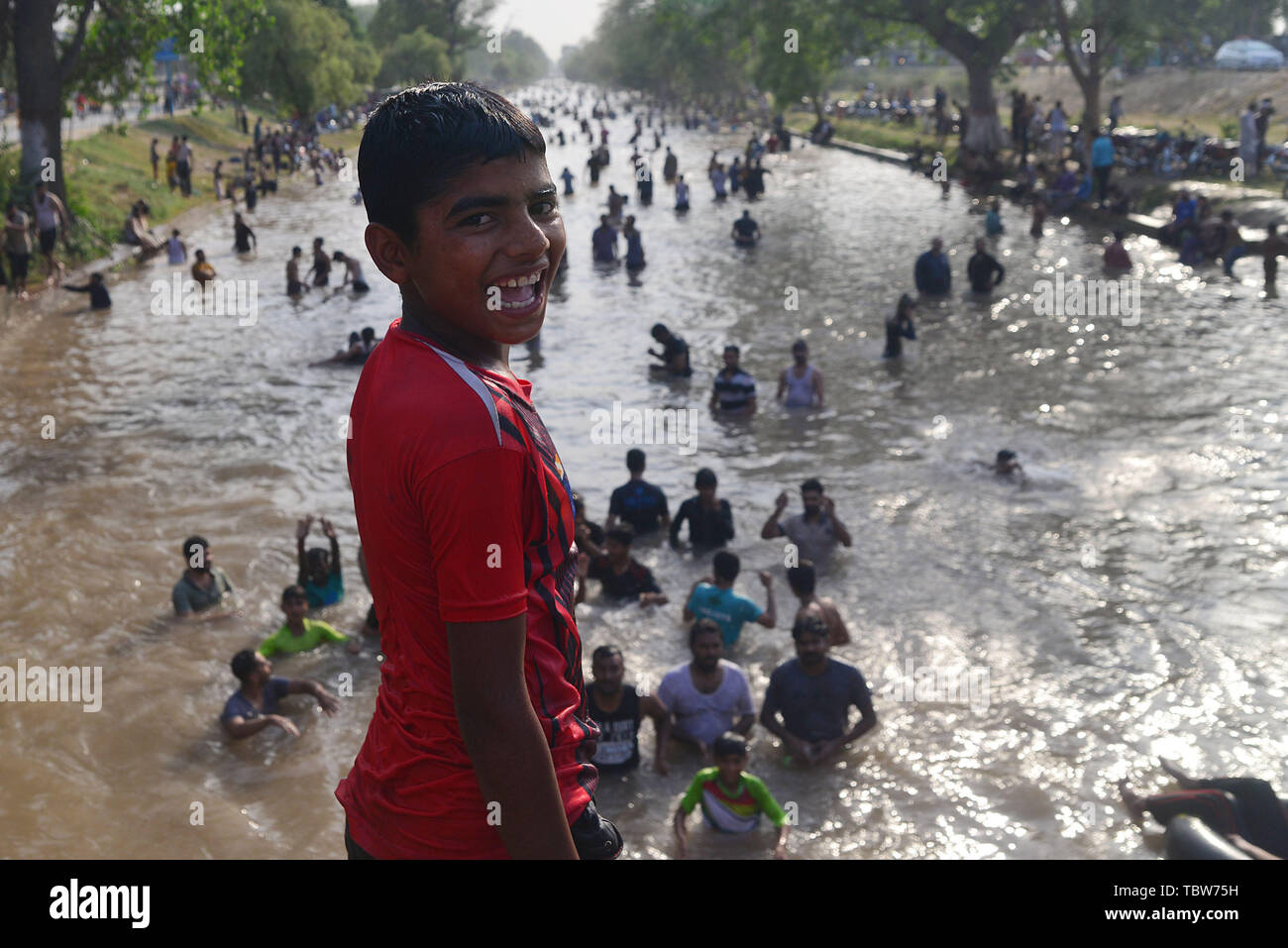 Lahore Pakistan 02nd June 2019 A Large Number Of Pakistani People Taking A Bath In The Canal Water To Beat The Heat And Get Some Relief From The Extremely Hot Weather During